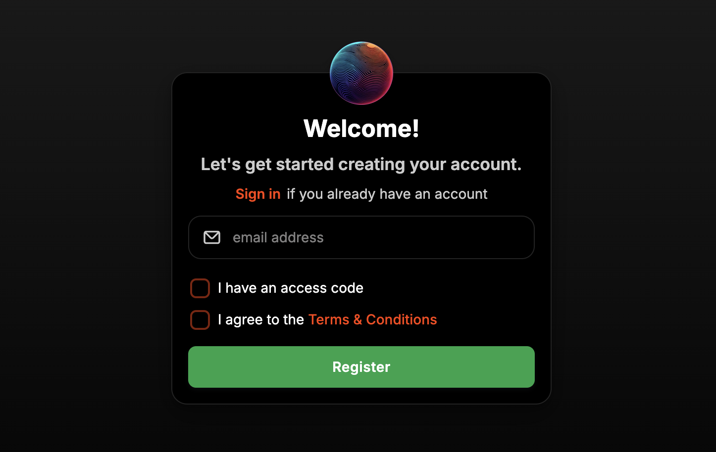 Go to [datalab.portexai.com](https://datalab.portexai.com) and click Register. Enter your email address, check the Terms & Conditions box, and submit.